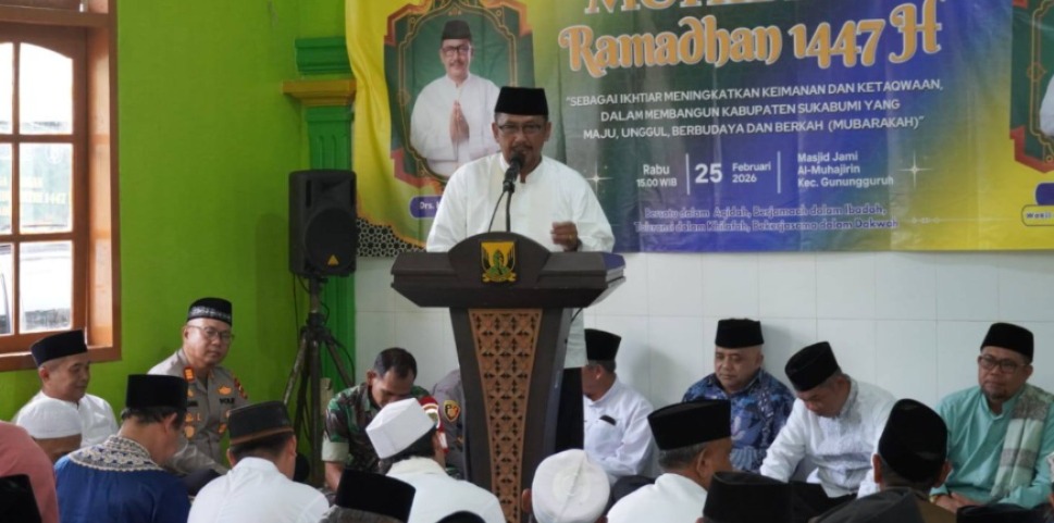 harewos.com, , Sukabumi, – Dalam suasana penuh kehangatan Ramadhan, Bupati Sukabumi H. Asep Japar bersama Wakil Bupati H. Andreas menyambangi Masjid Jami Al-Muhajirin, Kampung Ciburial, Gunungguruh, Rabu (25/2/2026). Agenda yang dikemas dalam Muhibah Ramadhan ini bukan sekadar silaturahmi, melainkan juga wadah menyampaikan capaian pembangunan sekaligus mendengar aspirasi warga.