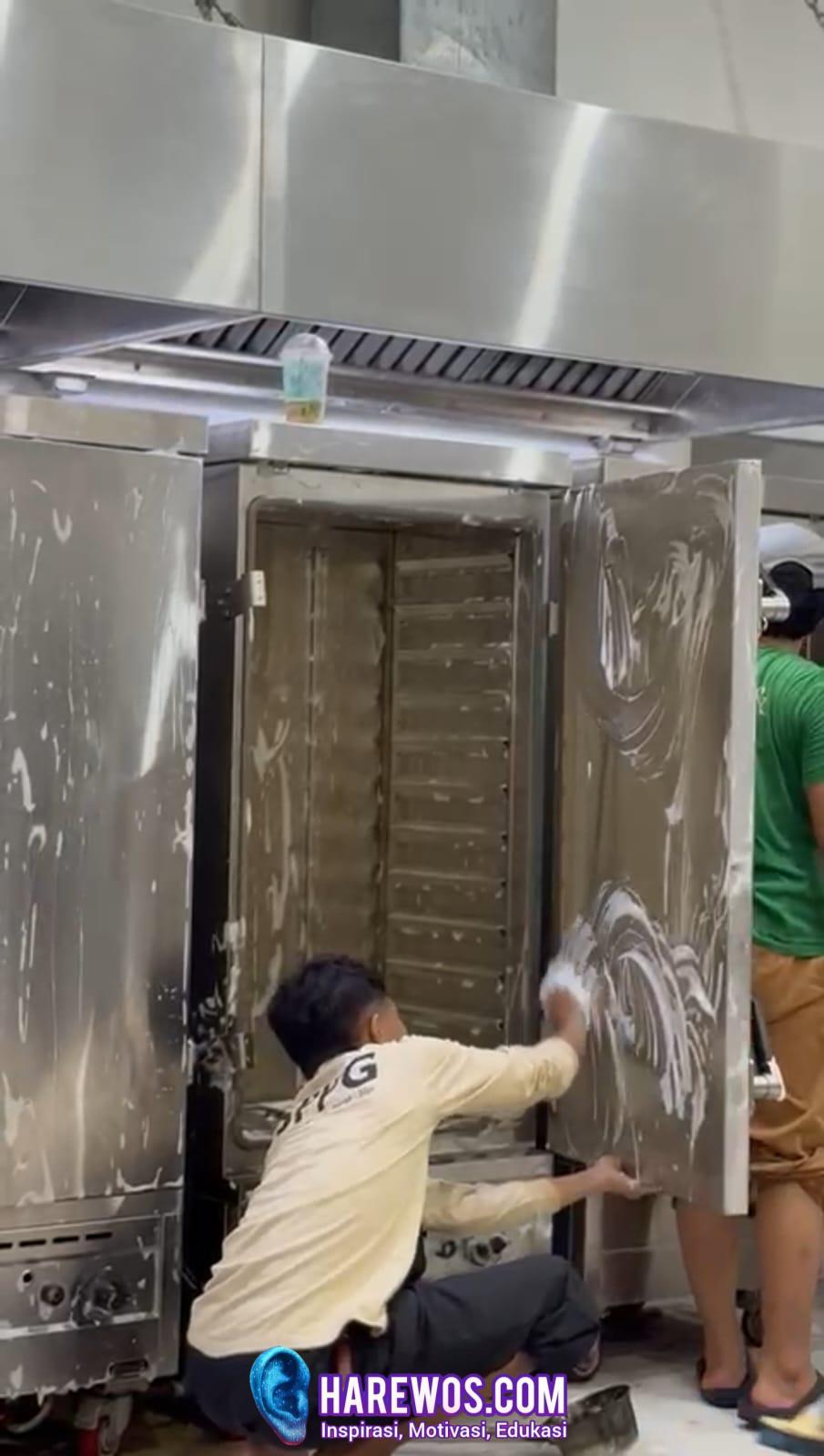 Pantauan di lokasi, para relawan tampak bekerja bersama membersihkan seluruh area dapur. Sejumlah petugas tampak mengepel lantai, sementara lainnya mencuci berbagai peralatan masak. Meja pemorsian juga dibersihkan dan dilap hingga siap digunakan.