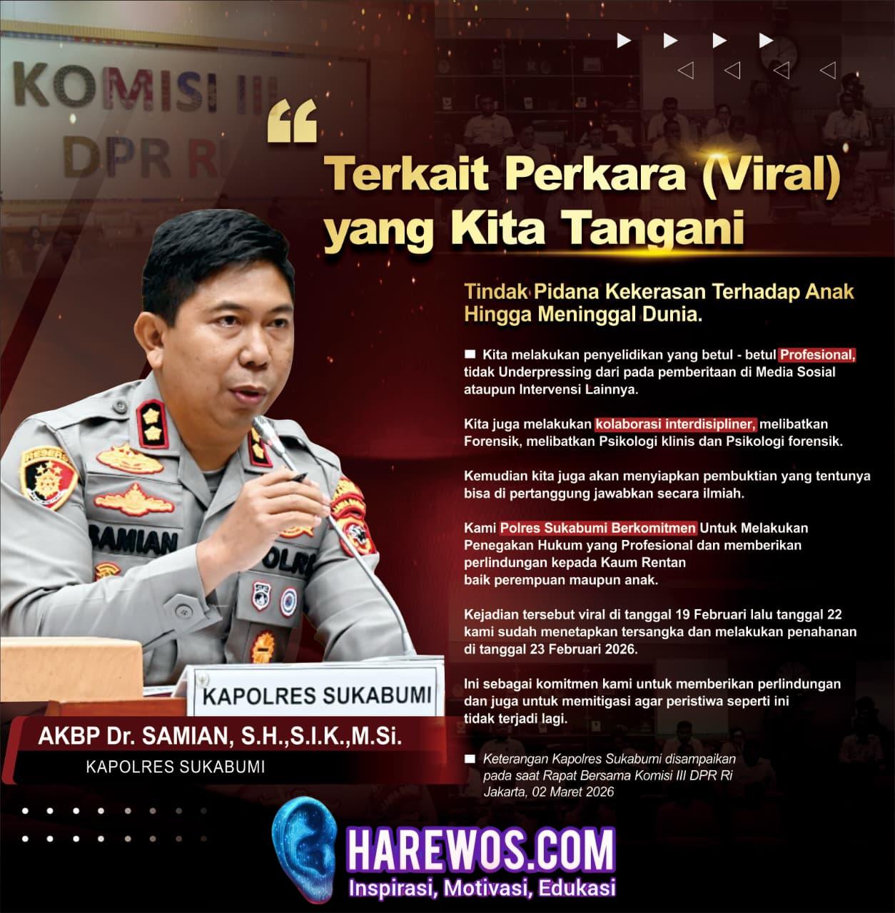 Dalam Rapat Dengar Pendapat (RDP) yang berlangsung hangat, Kapolres Sukabumi AKBP Samian membeberkan secara gamblang bagaimana jajarannya membedah kasus ini bukan dengan asumsi, melainkan dengan bukti ilmiah yang “kedap” intervensi.
